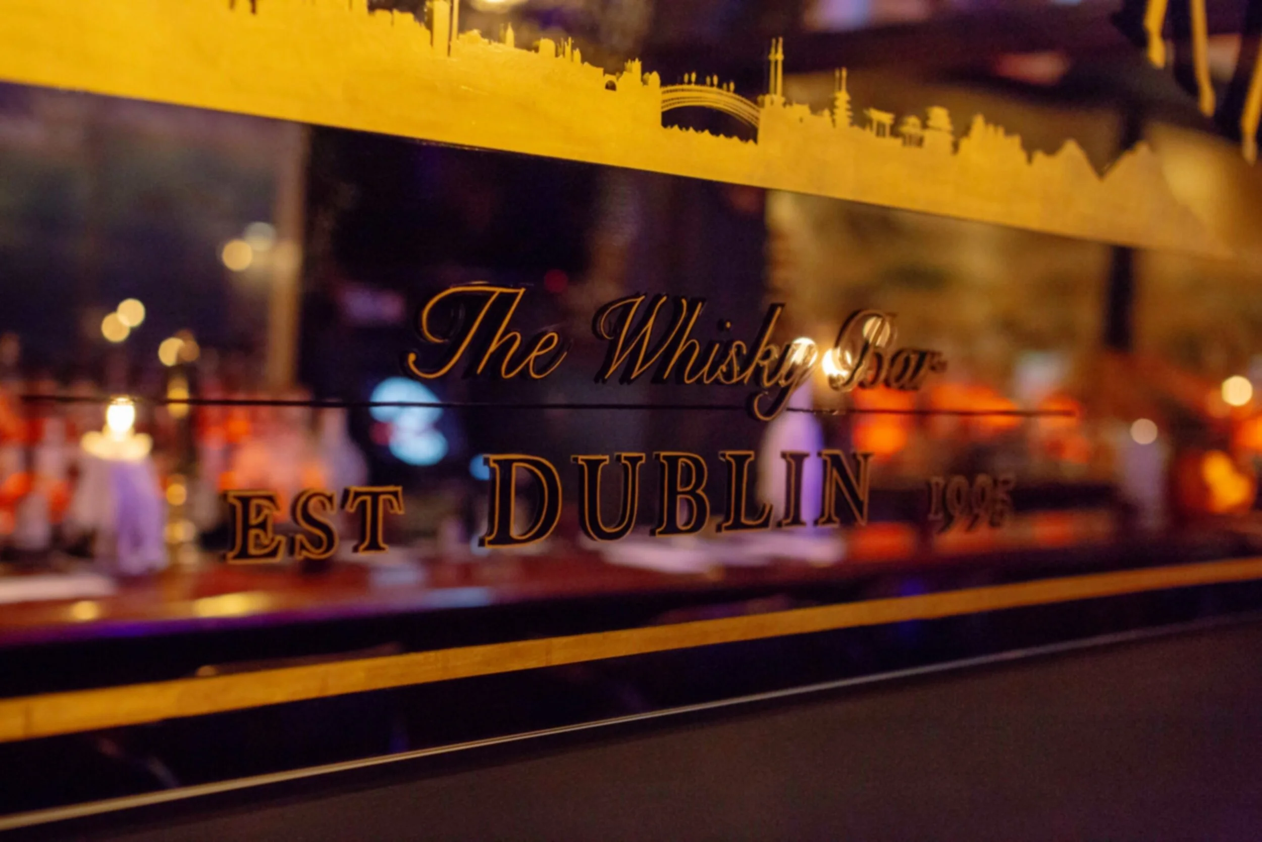 A creative feature of the new space is a bespoke design developed and added to the prominent mirror on one side of the intimate space. This concept brought together all the elements into a “classic pub mirror-style” design rendered in only black lettering and gold leaf, with the Yamamori signature logo symbol anchoring each of the four corners, and a nod to the establishment of Yamamori in 1995. The centerpiece landscape illustration depicts the Dublin and Kyoto skylines linked at the centre by the Ha’penny Bridge - the iconic Dublin City footbridge situated, incidentally, right at the steps of Yamamori on the northside quays. This global connection of culture, tradition, and imbibement is at the heart of The Whisky Bar.
