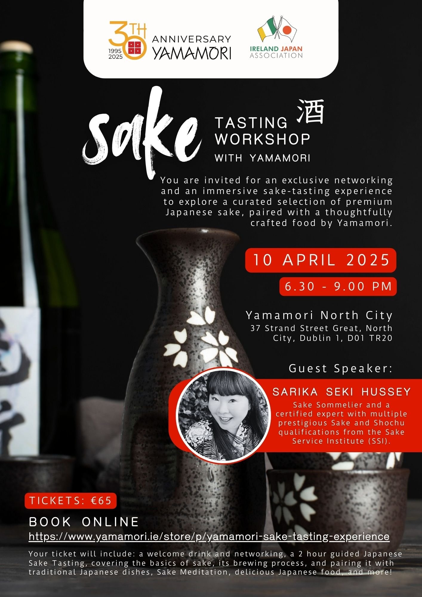 Join us for an exclusive Sake Tasting Workshop on Thursday, April 10th, at Yamamori North City / Tengu Venue, hosted in collaboration with the Ireland Japan Association (IJA).