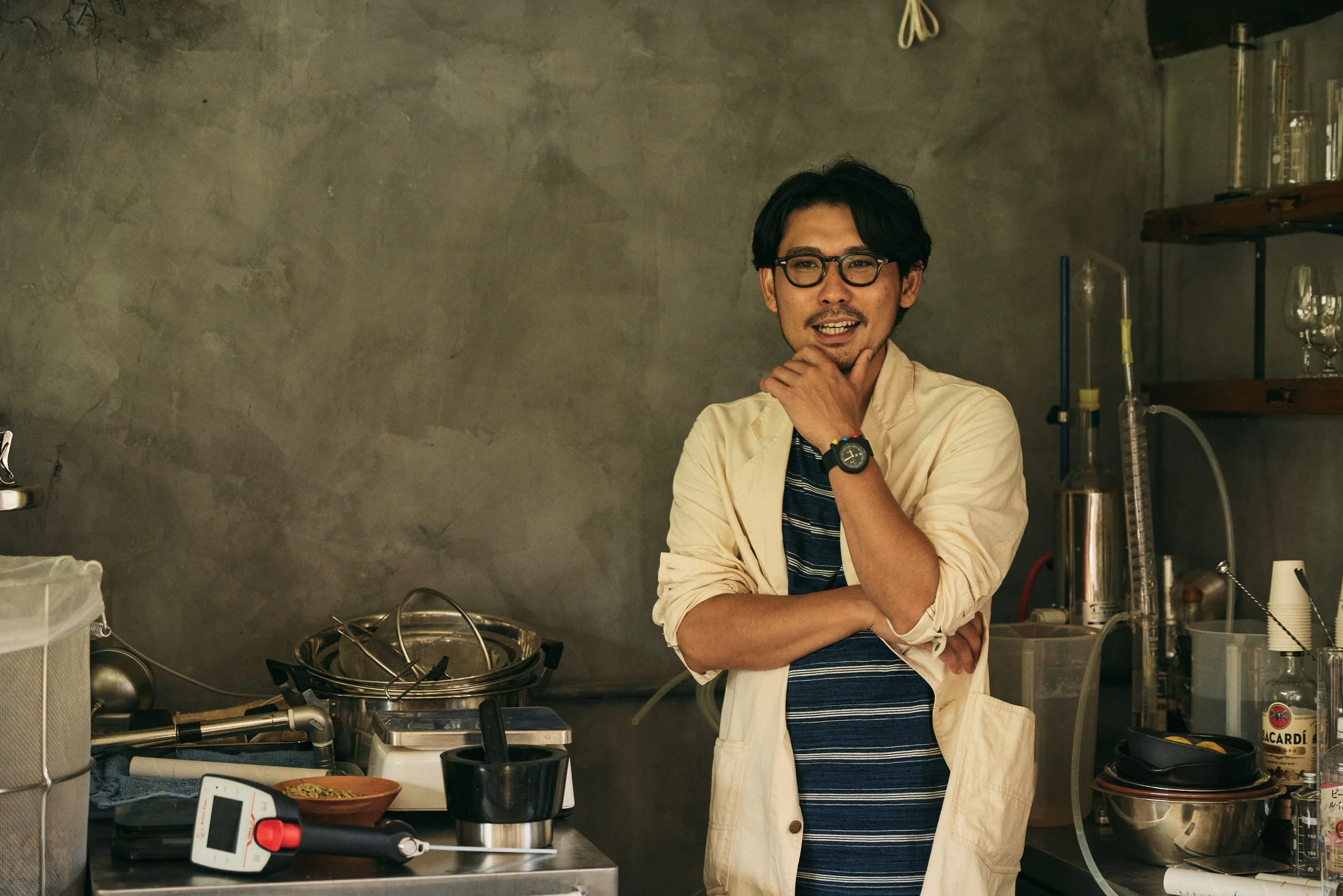 After working at the malt bar "Bar CAOL ILA" in Shibuya, Motonaga worked as a bartender at "Bar BenFiddich" in Shinjuku, "WA-SHU Japanese Wine" in Taiwan, and "Whiskey Cat", a sister store of Golden Promise in China. After that, he was greatly influenced by the way alcohol was made there while travelling around Europe, and he became interested in making herbal liquor after realising that "the concept of blending herbal liquor is the same as cocktails."